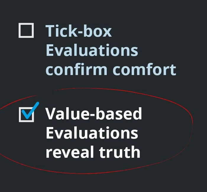 “Tick-box Evaluations confirm comfort. Value-based Evaluations reveal truth.”